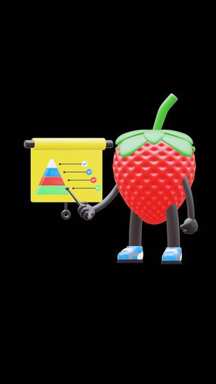 3D Strawberry Fruit Character Doing Presentation With Graph And Pointer Suitable For Business And Marketing Presentations. Transparent Background. Alpha Background. Looping Animation. Free Video