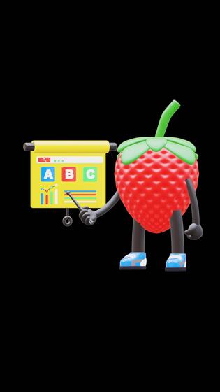 3D Strawberry Fruit Character Pointing At Line Graph Showing Growth Suitable For Business And Data Analysis Concepts. Transparent Background. Alpha Background. Looping Animation. Free Video