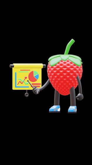 3D Strawberry Fruit Character Pointing At Mixed Charts Suitable For Data Visualization And Analysis Concepts. Transparent Background. Alpha Background. Looping Animation. Free Video