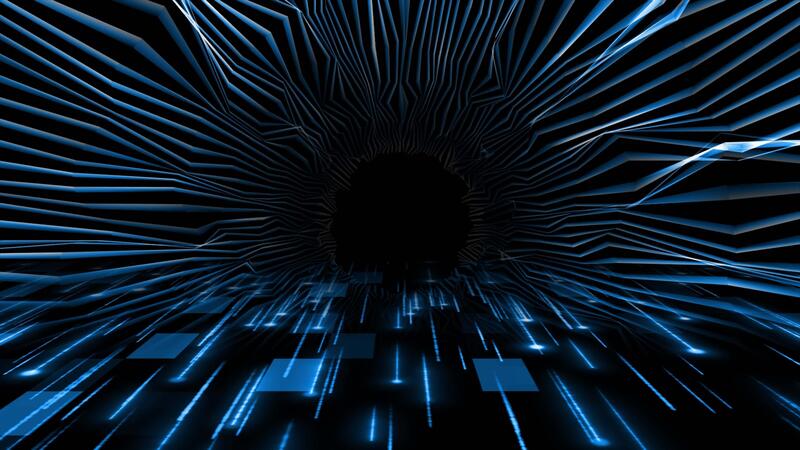 Royal blue color complex pattern abstract 3d tunnel with 3d empty space modern design on black background Pro Video
