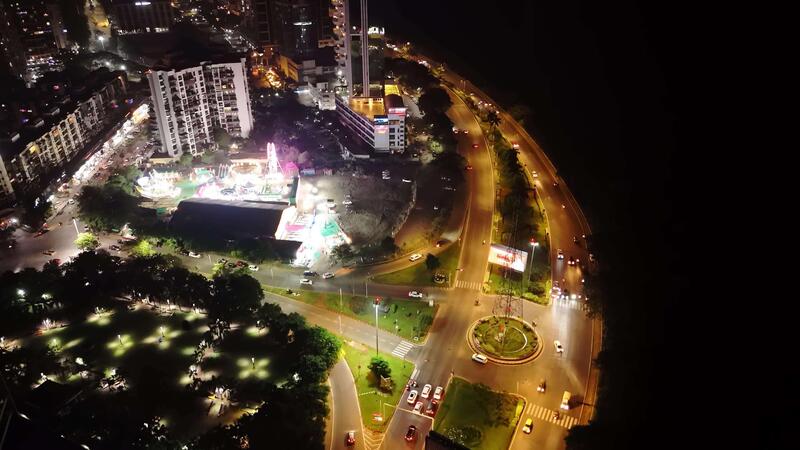 Drone View at Illuminated Highway Curve in Night Pro Video