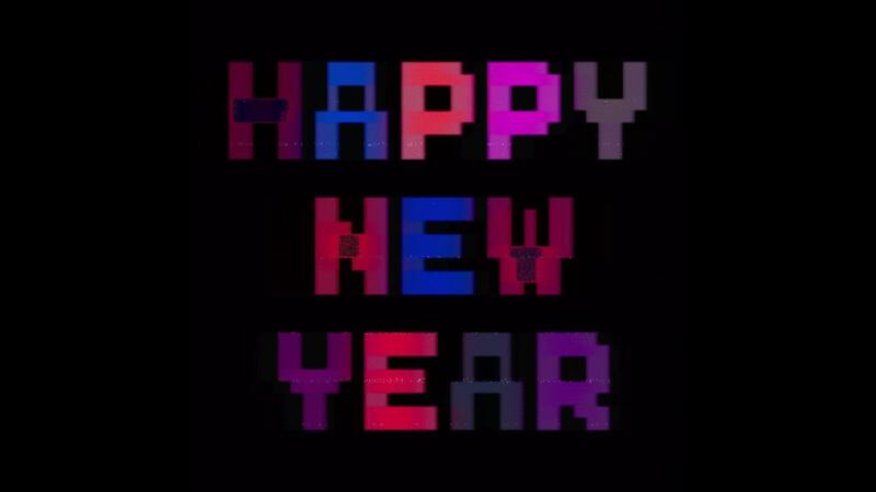 happy new year text in pixel art with changing color and vaporwave effect Free Video