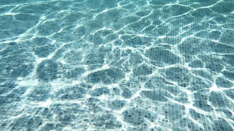 Abstract blue color water in pool, pure natural swirl pattern texture. Top view of a blue calm, clear water surface, texture with ripples and shadow. Summer banner concept, backdrop Pro Video