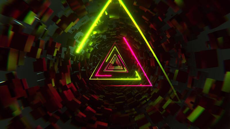Light Green and Pink Neon Sci-Fi Triangular Tunnel Background VJ Loop 4K Pro Video