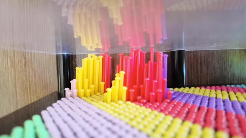 Colorful pin fidget wall with vibrant patterns creates dynamic and mesmerizing visual movements captured in high resolution. Pro Video