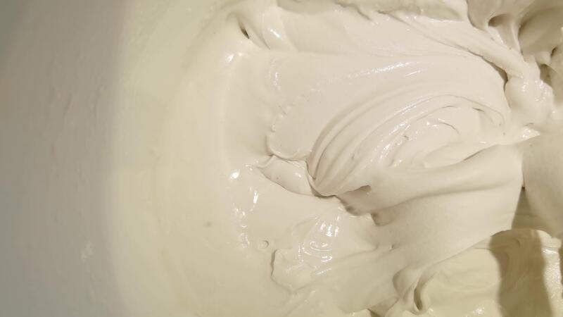 Smooth mixing process of creamy batter in large bowl captured in high definition closeup sequence. Pro Video