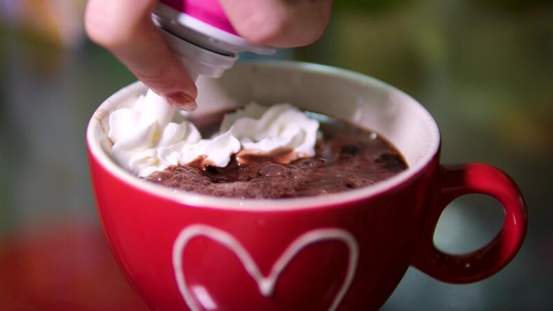 cocoa with cream Putting stick cookies in coffee with whipping cream Pro Video