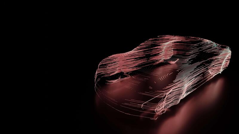 Animation of prototype modern super car in artistic style with rays of light around the shape. 3d render. Seamless loop. Pro Video