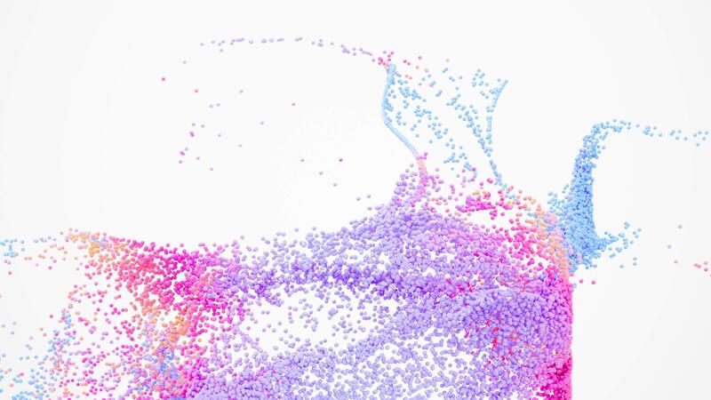 Abstract splashing particles, colorful particles, 3d rendering. Pro Video