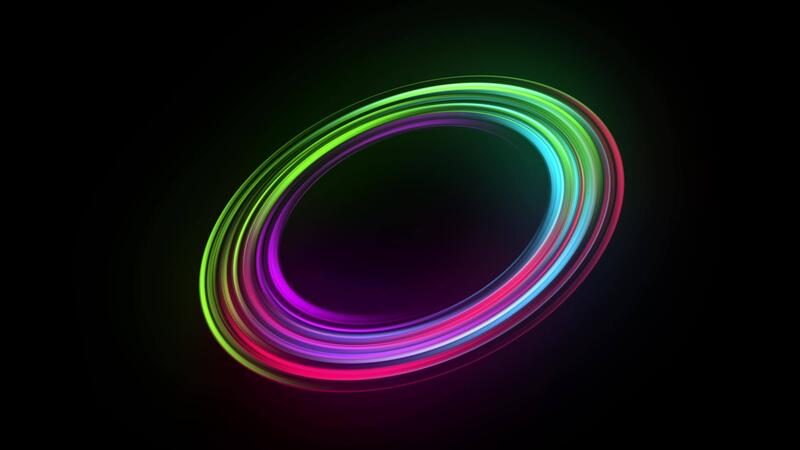 Neon light trail circle. Endless circular pattern. Empty space for text for advertising, Pro Video
