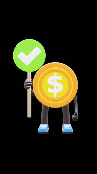 3D Money Coin Character Holding Correct Sign Suitable For Right And Approval Concepts. Transparent Background. Alpha Background. Looping Animation. Free Video