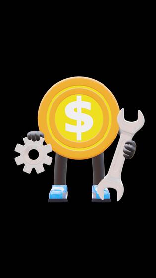 3D Money Coin Character Holding Wrench And Gear For Maintenance And Technical Support Suitable For Business And Technical Concepts. Transparent Background. Alpha Background. Looping Animation. Free Video