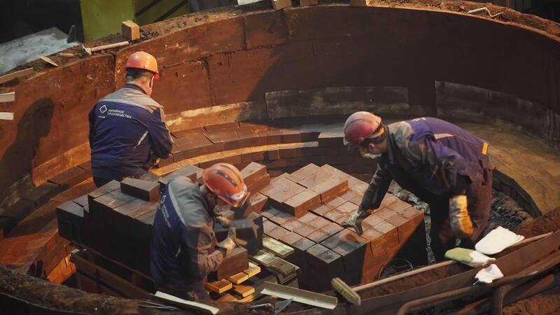 Workers Involved in the Process of Constructing a Circular Architectural Structure. Stock Clip Pro Video