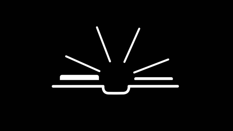 Animation of open book white outline in black background, its pages gently fluttering in the breeze, inviting readers to explore its endless stories and knowledge Free Video