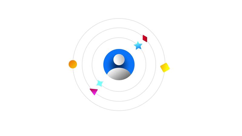 Animation of abstract representation of a user profile surrounded by colorful geometric shapes, illustrating connectivity and interaction in a digital space Free Video
