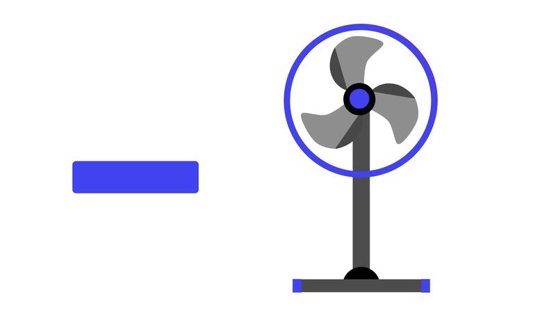 Animation of sleek fan design in gray and blue, showcasing a simple interface with a blue button, emphasizing functionality and modern aesthetics Free Video