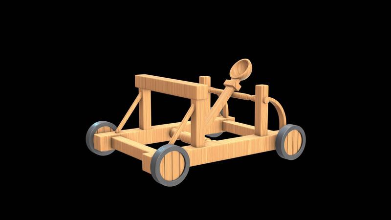 3D Stylized Catapult Rotating on a Transparent Background. Seamless Loop. 4K Pro Video
