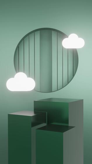 3d animation green podium and clouds minimal product display background, green podium. Product visualization on the platform. Pro Video