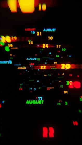 Abstract digital art with glowing text representing the month of August in dynamic neon colors on a dark background Pro Video