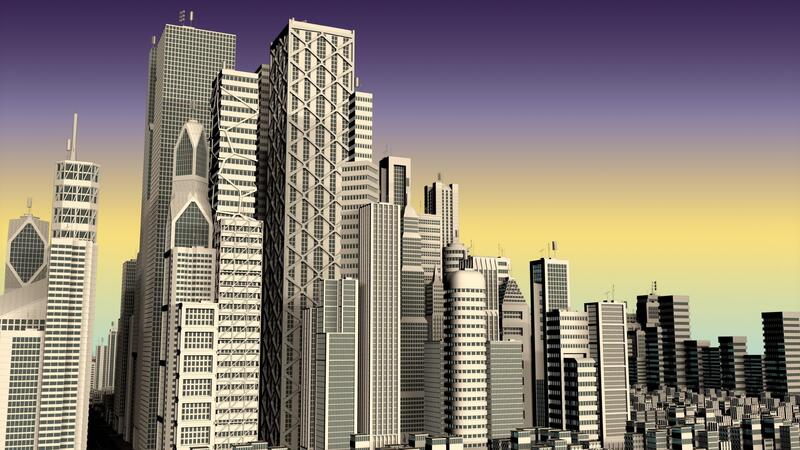 Panoramic view of the passage of time from night to day of a modern city with white buildings. Loop sequence. 3d animation Free Video