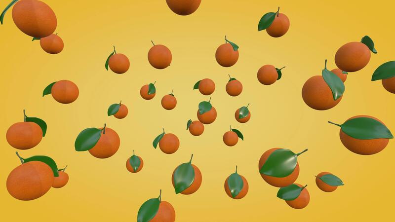 3D animation of a rotating cloud-like orange on a yellow gradient background, complemented with a black and white luma matte Free Video