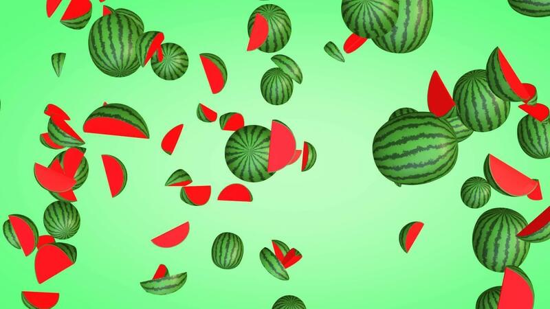 3D animation of falling watermelons with a green gradient background in vertical view Free Video