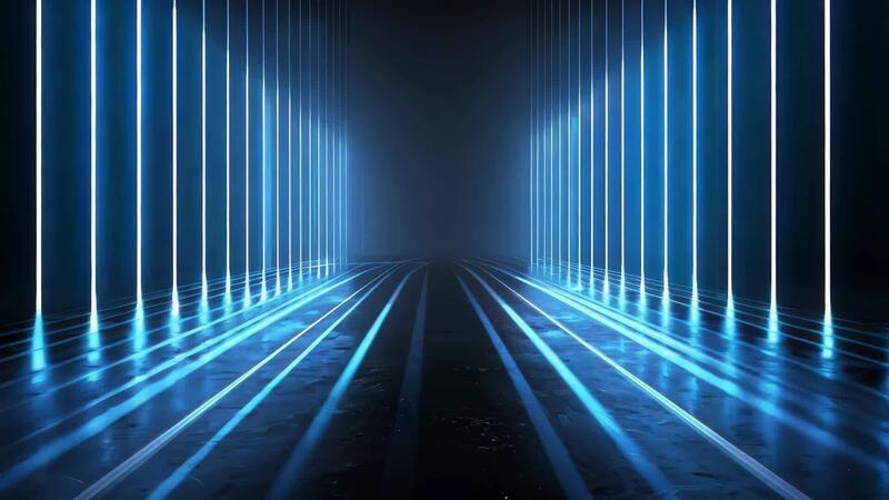 Futuristic scene with glowing blue lines creating dynamic visual paths in a dark space, perfect for technology and sci-fi themes. Free Video