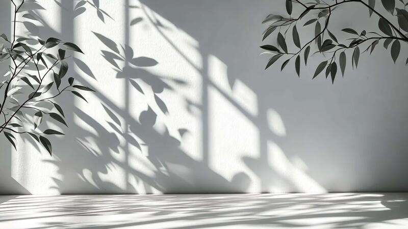 Abstract Light blue leaves casting soft shadows on a white background, creating a serene and elegant atmosphere Pro Video