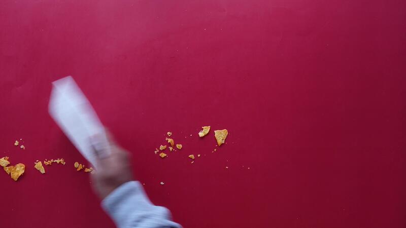 Removing Crumbs to Ensure a Clean and Tidy Red Table Surface Pro Video