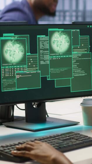 Vertical Woman requesting help from cybersecurity team after seeing security incidents affecting data center network system, protecting infrastructure from hacker attacks, camera A Pro Video