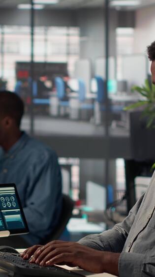 Vertical Black coworkers collaborating on investment strategy with data on files, CEO and assistant with extensive expertise to work on decision making. Administrative tasks in the office. Camera A. Pro Video