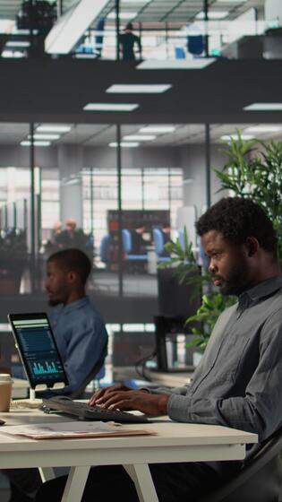 Vertical Analyst studying infographics and performance metrics for decision making, focused on project goals. Executive assistant manages business tasks and reviewing data, showcasing expertise. Camera B. Pro Video