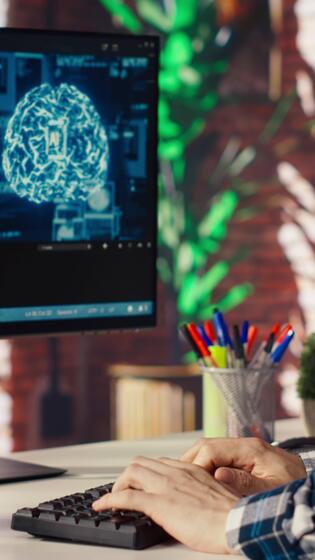 Freelancing computer engineer doing maintenance on artificial intelligence systems, closeup. Remote tech support specialist at working from home, doing checkup on AI systems, camera B Pro Video