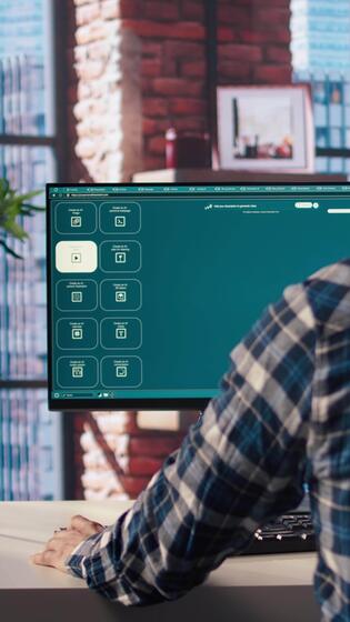 Man looking at tutorial on green screen tablet to learn how to use text to generative models. Man in home office watching guide on mockup device about AI program, camera A Pro Video