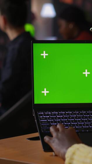 Vertical Black scholar reading information via internet next to chroma key in a library, focusing on theoretical studies and completing her class assignments. Taking notes for educational work. Camera B. Pro Video