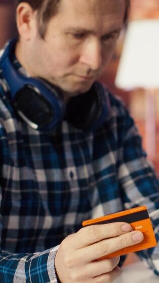 Man has difficulties while internet shopping, receiving errors after typing credit card information on laptop. Frustrated shopper sees insufficient funds popup after adding payment method, camera B Pro Video