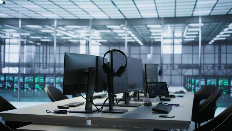 Close up of tablet in data center workspace used for controlling company network infrastructure. Focus on coding software on device in server room used to ensure optimal system performance Pro Video
