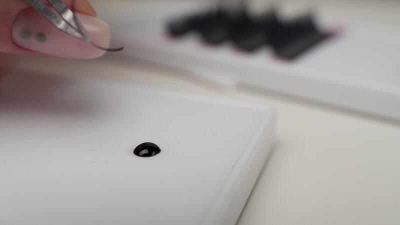Eyelash Extension Procedure. Close-up of a master at work artificial eyelash extensions material. Hands of the master taking lashes from the set Pro Video