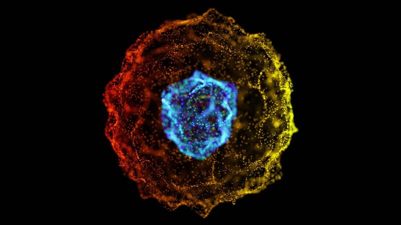 Dynamic Particle Sphere with Blue Core and Fiery Energy Layers Pro Video