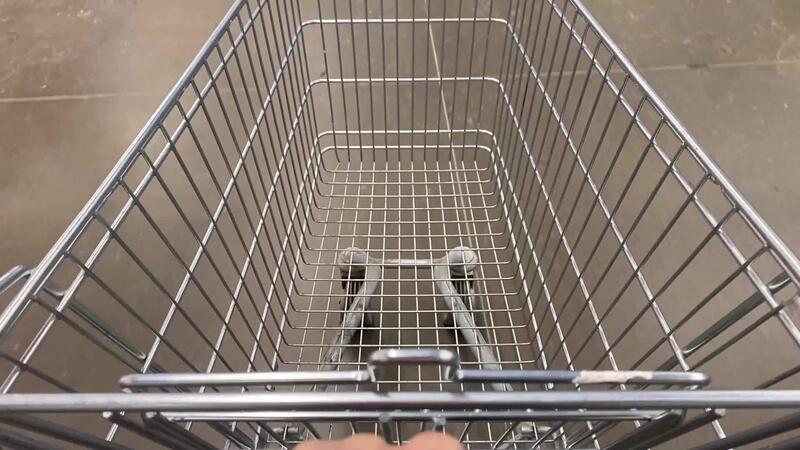An empty shopping cart reveals its sturdy frame and expansive open space, offering a unique perspective as eager shoppers prepare for their adventurous grocery shopping journey ahead Pro Video