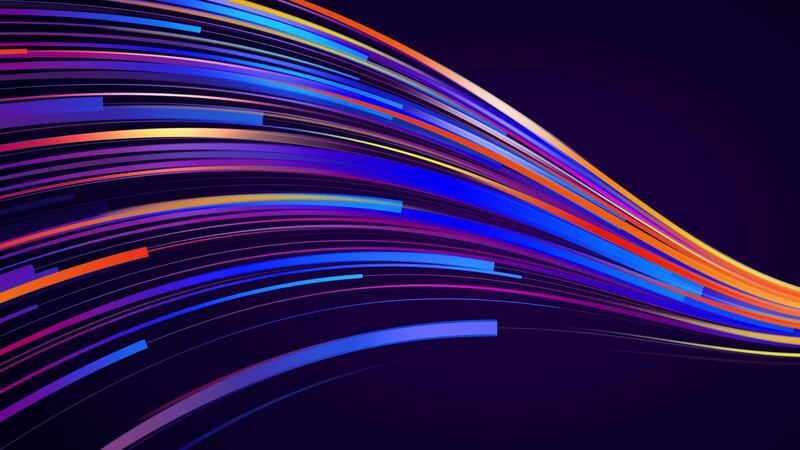 Animated glowing speed lines looped. Curved neon lines. Abstract animated background of multicolored virtual ribbon with loop glowing in ultraviolet spectrum. Digital data. HD, 4K, 60 fps. Pro Video