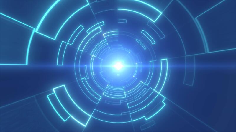 Abstract futuristic tunnel with concentric light rings and geometric patterns, central glowing light source, vibrant colors for digital and sci-fi themes background Pro Video