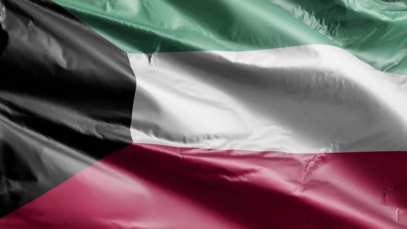 Kuwait flag slow waving on the wind loop. Kuwaiti banner smoothly swaying on the breeze. Full filling background. 20 seconds loop. Pro Video