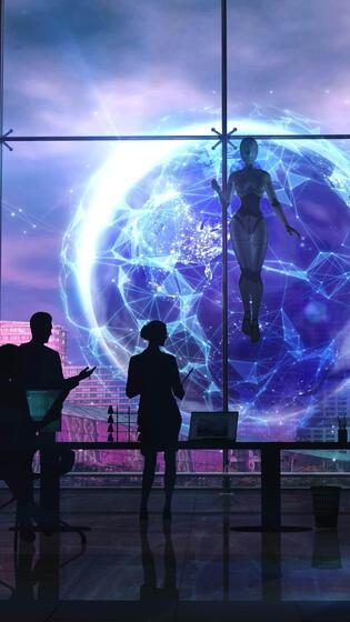 Working with artificial intelligence in a corporation. 3D render Pro Video