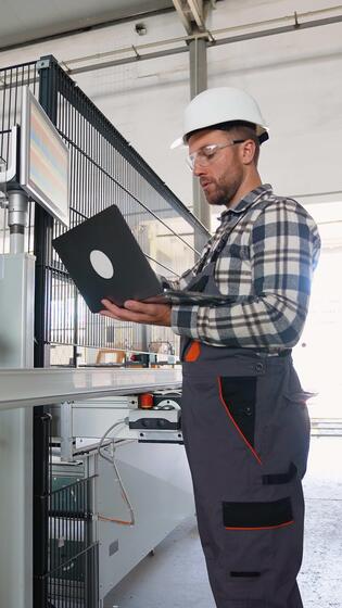Engineer sets up a production line at programmable CNC machine Pro Video