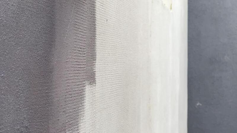A hand is skillfully applying a quartz wall finish using a brush, creating a smooth and even texture on the wall during home renovation work Pro Video