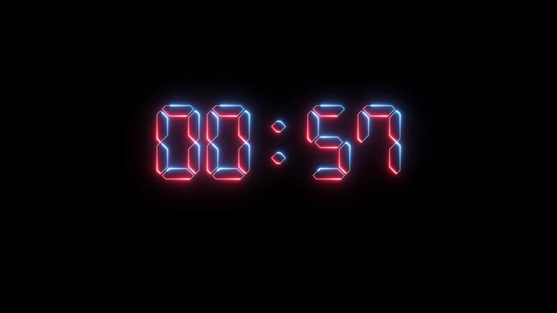 1 minute display timer Neon line counting down Animation Isolated on Black Background Pro Video