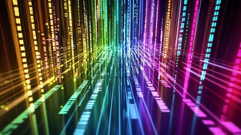 A closeup of encrypted data streams flowing through a network depicted as colorful streams of light illustrating the dynamic nature of data protection in digital environments Pro Video
