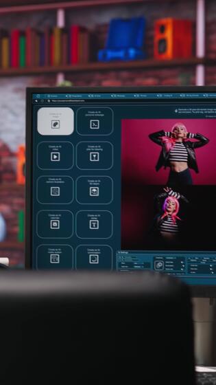 Vertical Computer in home office showing program converting text prompts into photo output. Text to image generative models AI tech software on computer display in cozy bright apartment Pro Video