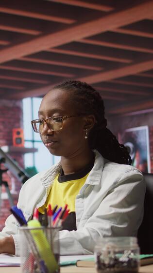 Vertical Tired teleworker yawning while typing on notebook keyboard in home office to write emails. Exhausted remote worker feeling overworked, suffering burnout while using laptop, camera A Pro Video